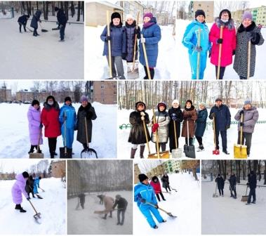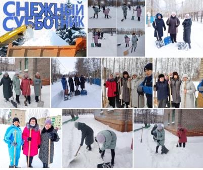 После обильного снегопада пора подумать и о благоустройстве зимней школьной территории. В рамках районной акции «Снежный субботник», сегодня 20 января 2022 года, на уборку прилегающей территории школы вышли педагоги, тех. персонал и работники столовой. Хорошие погодные условия позволили очистить территорию нашей школы в более короткие сроки. Однако стоит помнить, что субботник – это не только мероприятие по очищению территории, но ещё и возможность пообщаться, поближе познакомиться со своими коллегами!