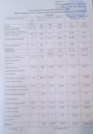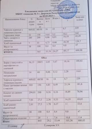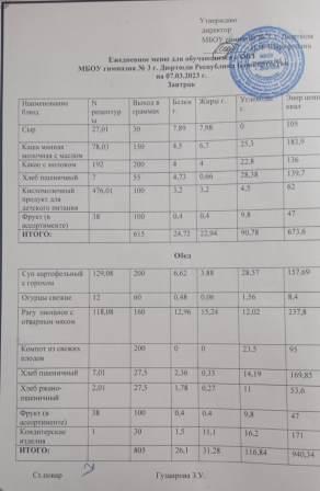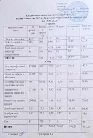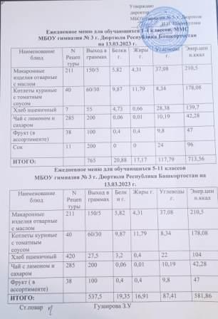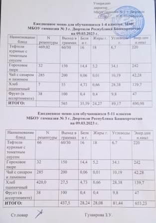 Меню на 09.03.2023 для 1-4 и 5-11 кл