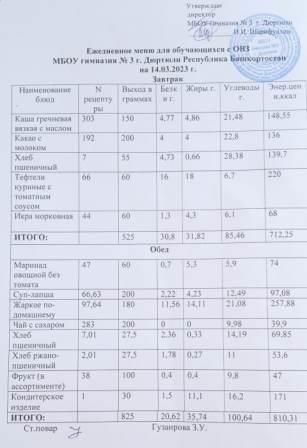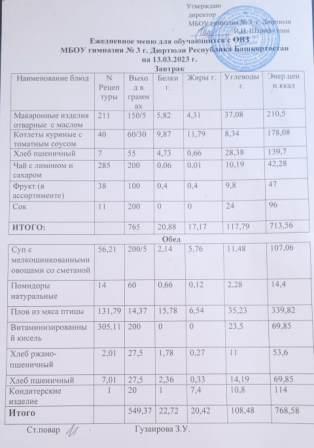 Меню на 13.03.2023 для 1-4 и 5-11 кл