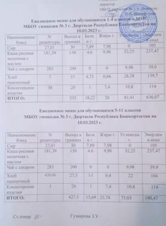 Меню на 10.03.2023 для 1-4 и 5-11 кл