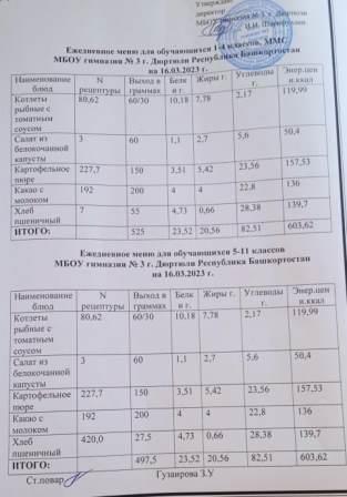 Меню на 16.03.2023 для 1-4 и 5-11 кл