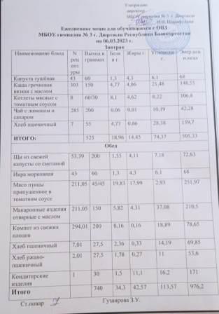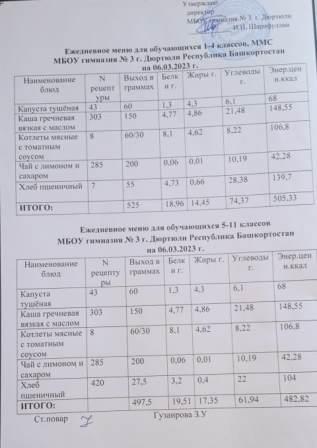 Меню на 06.03.2023 для 1-4 и 5-11 кл
