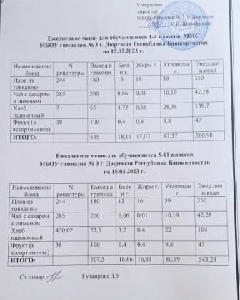 Меню на 15.03.2023 для 1-4 и 5-11 кл