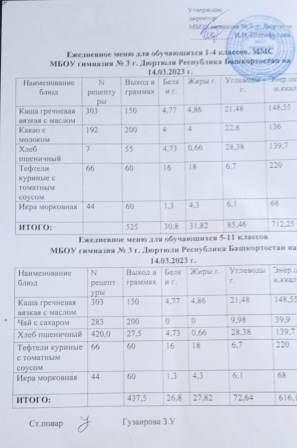Меню на 14.03.2023 для 1-4 и 5-11 кл
