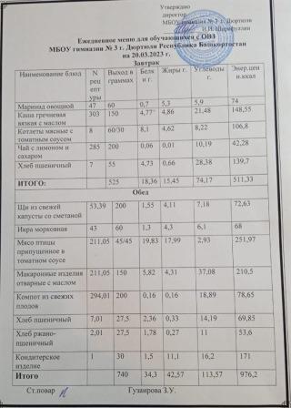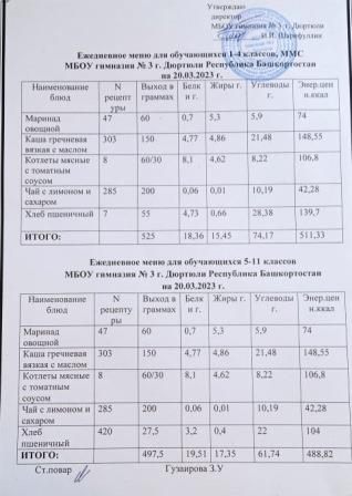 Меню на 20.03.2023 для 1-4 и 5-11 кл