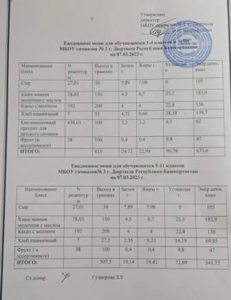 Меню на 07.03.2023 для 1-4 и 5-11 кл