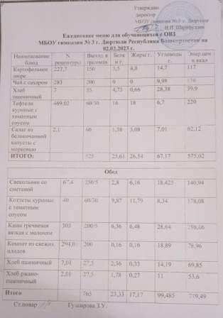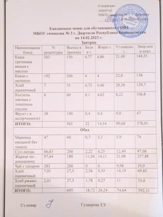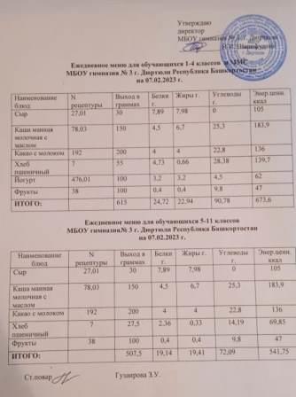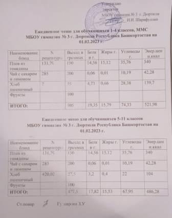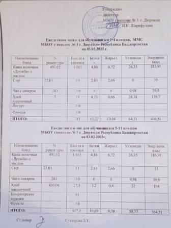 Меню на 03.02.2023 для 1-4 и 5-11 кл