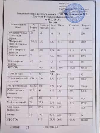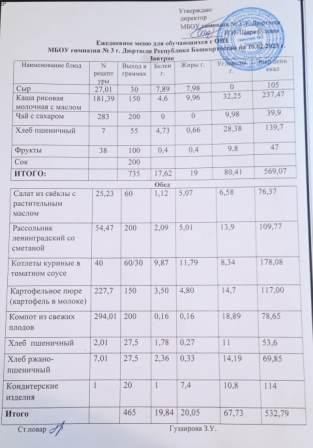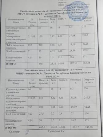 Меню на 08.02.2023 для 1-4 и 5-11 кл