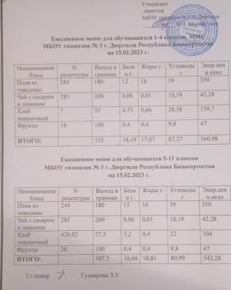 Меню на 15.02.2023 для 1-4 и 5-11 кл