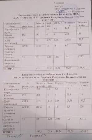 Меню на 02.02.2023 для 1-4 и 5-11 кл