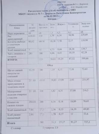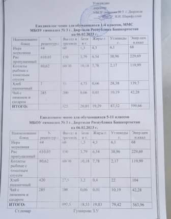 Меню на 06.02.2023 для 1-4 и 5-11 кл