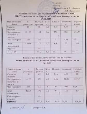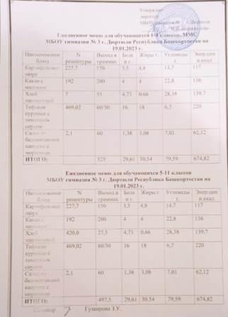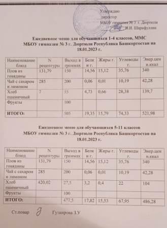 Меню на 19.01.2023 для 1-4 и 5-11 кл