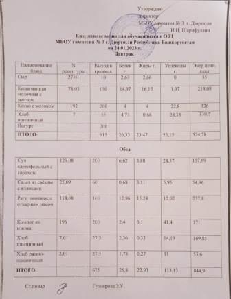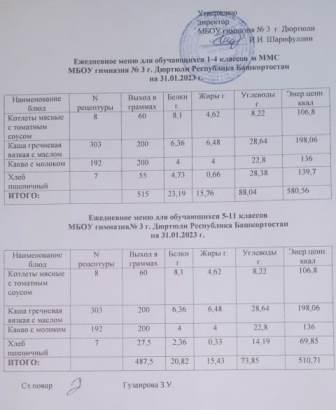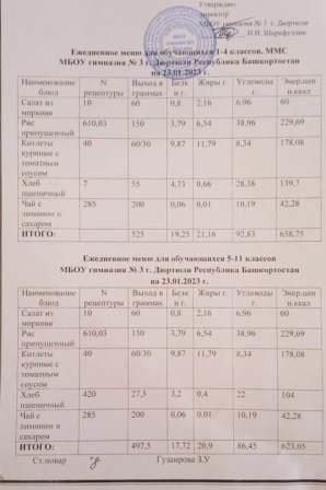 Меню на 23.01.2023 для 1-4 и 5-11 кл