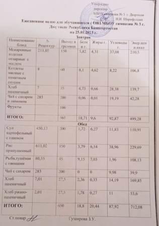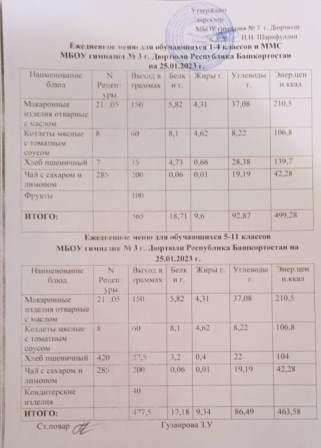 Меню на 25.01.2023 для 1-4 и 5-11 кл