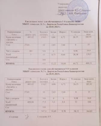 Меню на 20.01.2023 для 1-4 и 5-11 кл