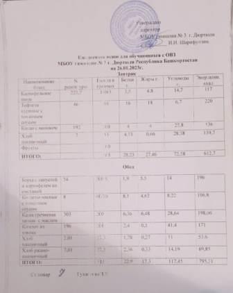 Меню на 26.01.2023 для ОВЗ