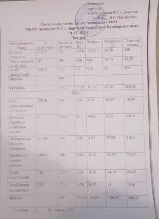 Меню на 01.02.2023 для ОВЗ