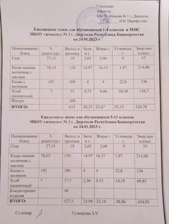 Меню на 24.01.2023 для 1-4 и 5-11 кл