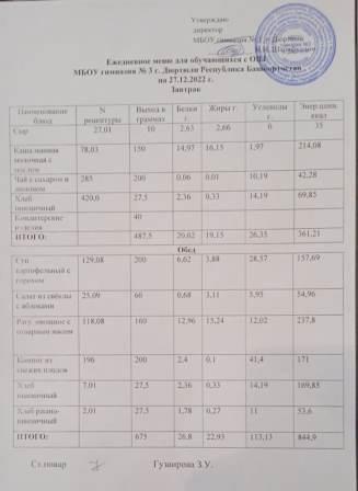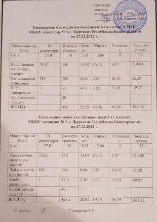 Меню на 27.12.2022 для 1-4 и 5-11 кл