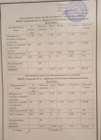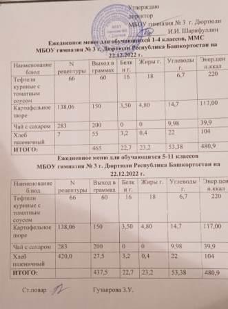 Меню на 22.12.2022 для 1-4 и 5-11 кл