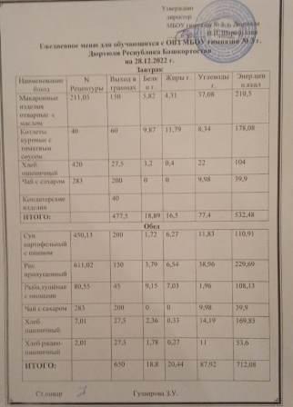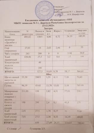 Меню на 23.12.2022 для ОВЗ