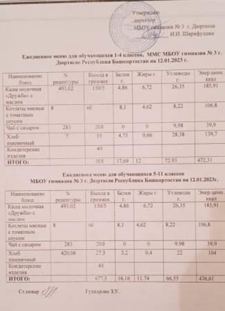 Меню на 12.01.2023 для 1-4 и 5-11