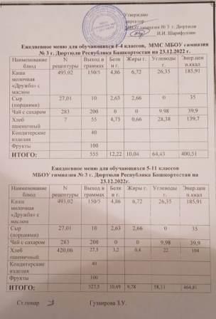 Меню на 23.12.2022 для 1-4 и 5-11кл