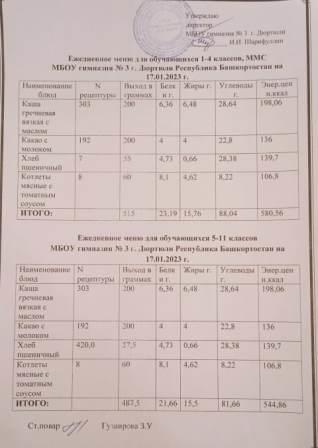Меню на 17.01.2023 для 1-4 и 5-11 кл
