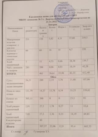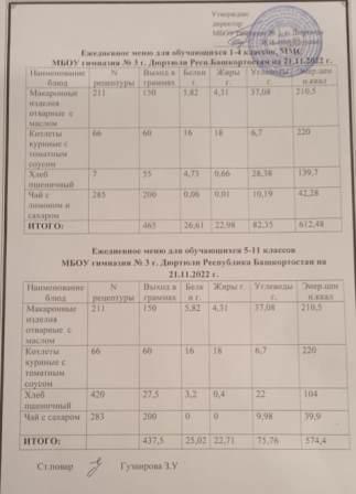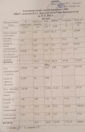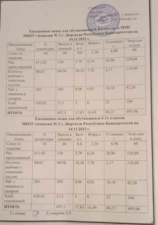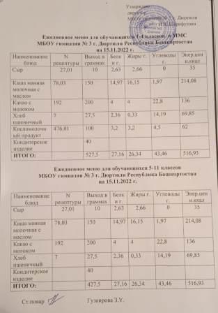 Меню на 15.11.2022 для 1-4 и 5-11 кл