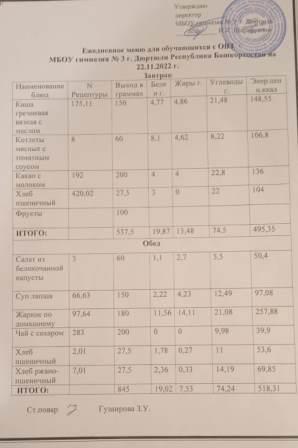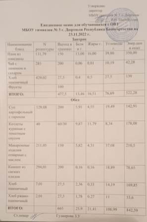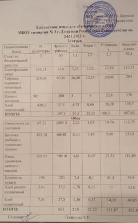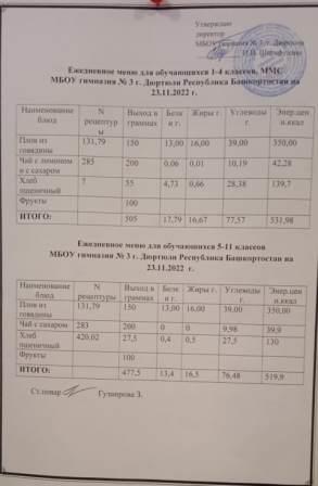 Меню на 23.11.2022 для 1-4 и 5-11 кл