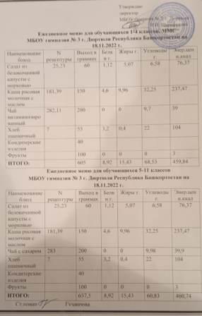 Меню на 18.11.2022 для 1-4 и 5-11 кл