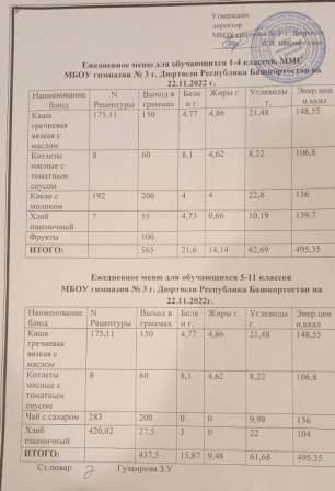 Меню на 22.11.2022 для 1-4 и 5-11 кл