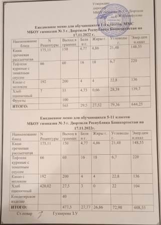 Меню на 17.11.2022 для 1-4 и 5-11 кл