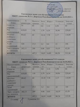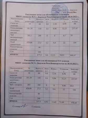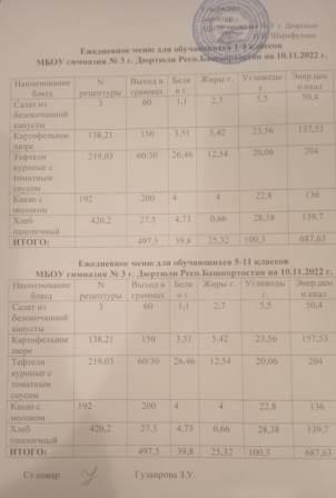 Меню на 10.11.2022 для 1-4 и 5-11 кл