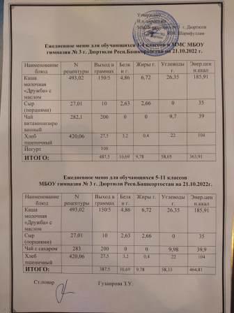 Меню на 21.10.2022 для 1-4 и 5-11 кл