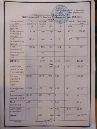 Меню на 28.10.2022 для ОВЗ