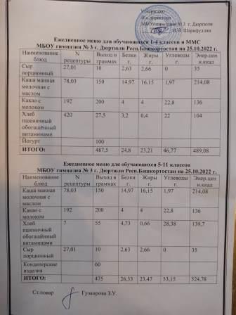 Меню на 25.10.2022 для 1-4 и 5-11 кл