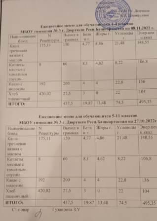 Меню на 08.11.2022 для 1-4 и 5-11 кл