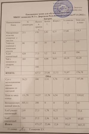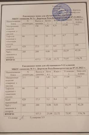 Меню на 07.11.2022 для 1-4 и 5-11 кл.