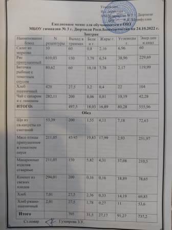 Меню на 24.10.2022 для 1-4 и 5-11 кл