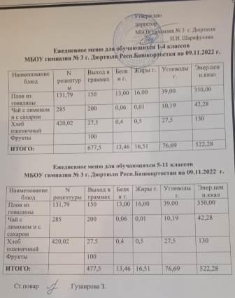 Меню на 09.11.2022 для 1-4 и 5-11 кл