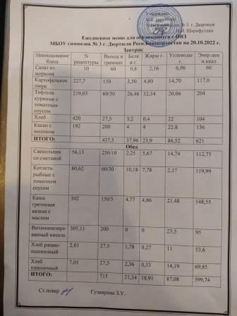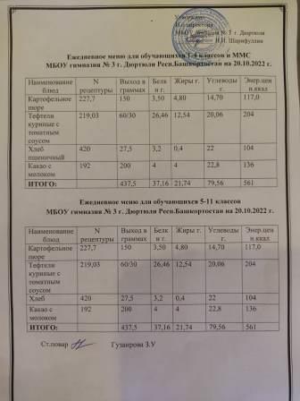 Меню на 20.10.2022 для 1-4 и 5-11 кл