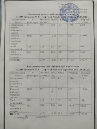 Меню на 17.10.2022 для 1-4 и 5-11 кл
