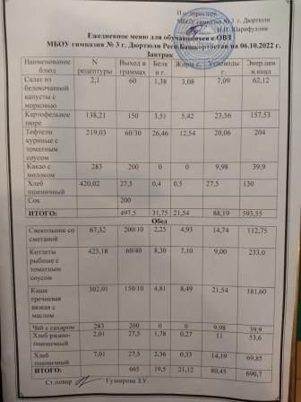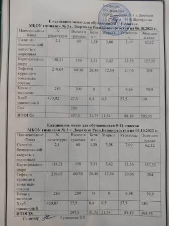 Меню на 6.10.2022 для 1-4 и 5-11 кл