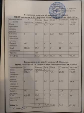 Меню на 18.10.2022 для 1-4 и 5-11 кл
