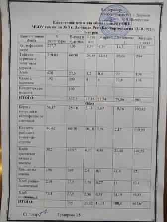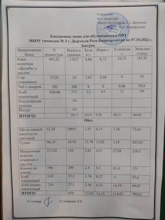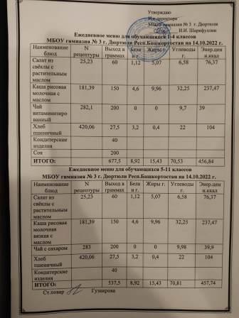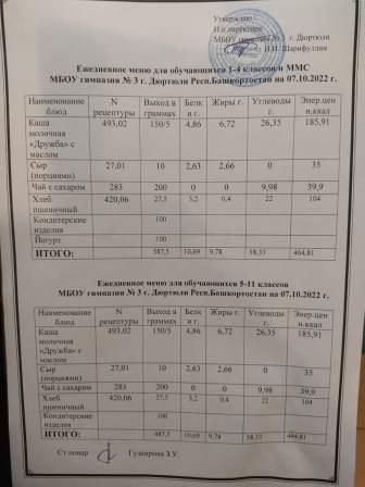 Меню на 7.10.2022 для 1-4 и 5-11 кл
