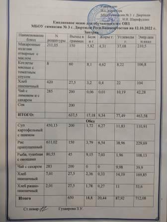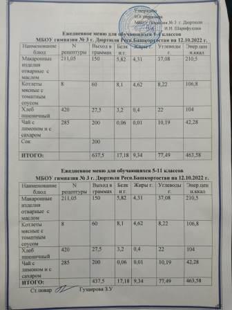 Меню на 12.10.2022 для 1-4 и 5-11 кл