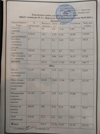 Меню на 10.10.2022 для 1-4 и 5-11 кл