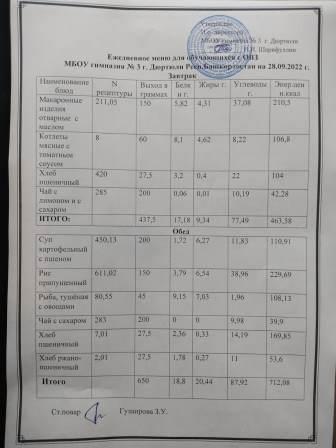Меню на 28.09.2022 для ОВЗ