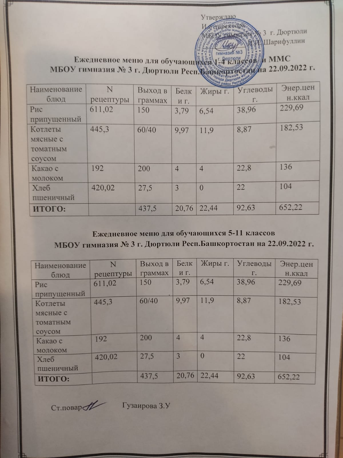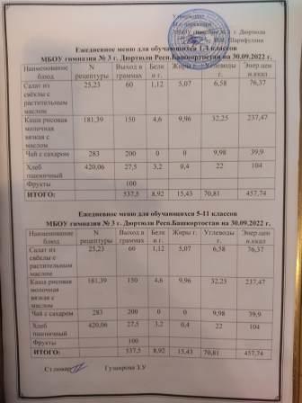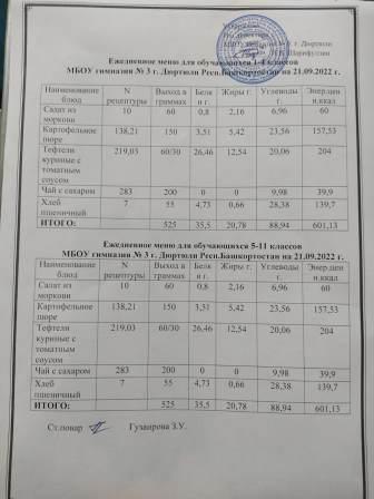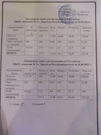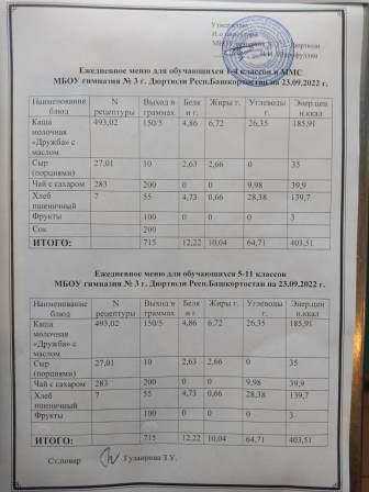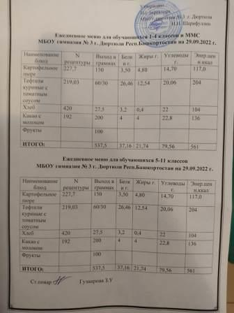 Меню на 22.09.2022 для 1-4 и 5-11 кл